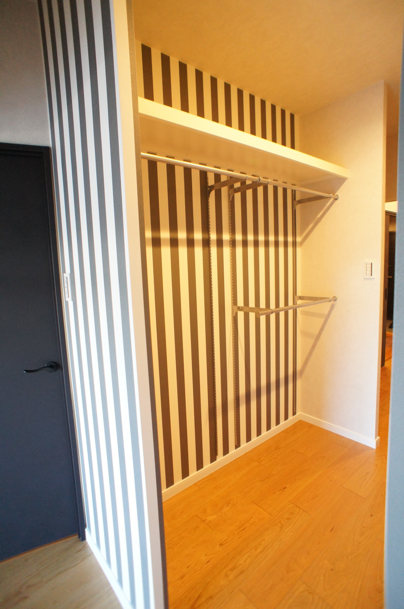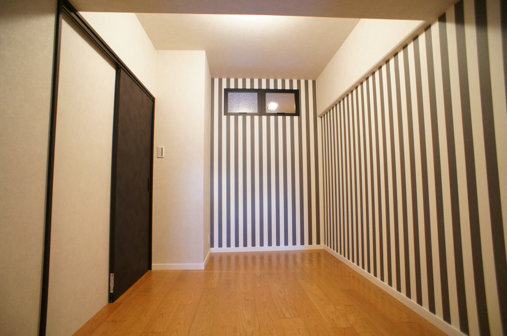 大容量のシューズクロークに書斎と寝室の間に通り抜けるウォークスルーの収納はゾーン分けと動線が使いやすく、書斎上部に開け閉め出来る室内窓を設置したためバルコニー側から共用廊下まで風の通り道が出来てマンション特有の結露も軽減出来ます。