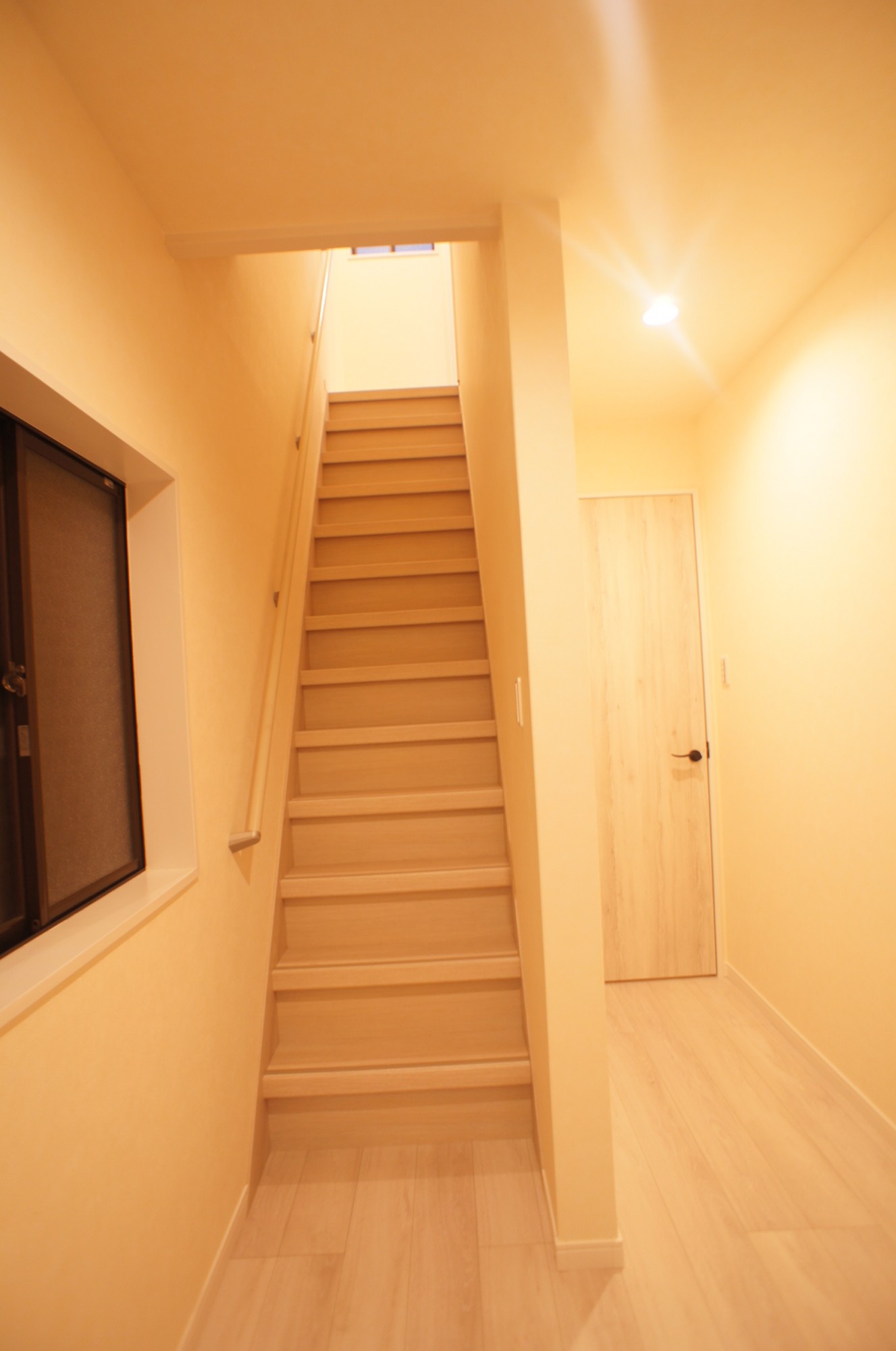 階段段数を増やす為、トイレの前のスペースも階段に取り込んでいます。