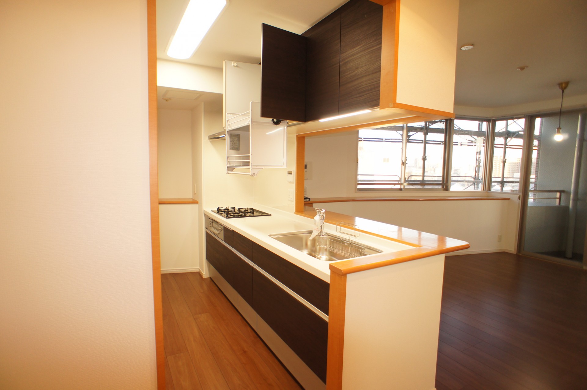 新居のインテアリアイメージを考えて家具などを用意されていたお施主様、お二人のこだわりや好きなテイストがしっかり共有できていたので床やキッチンの色等もイメージ通りになりました。