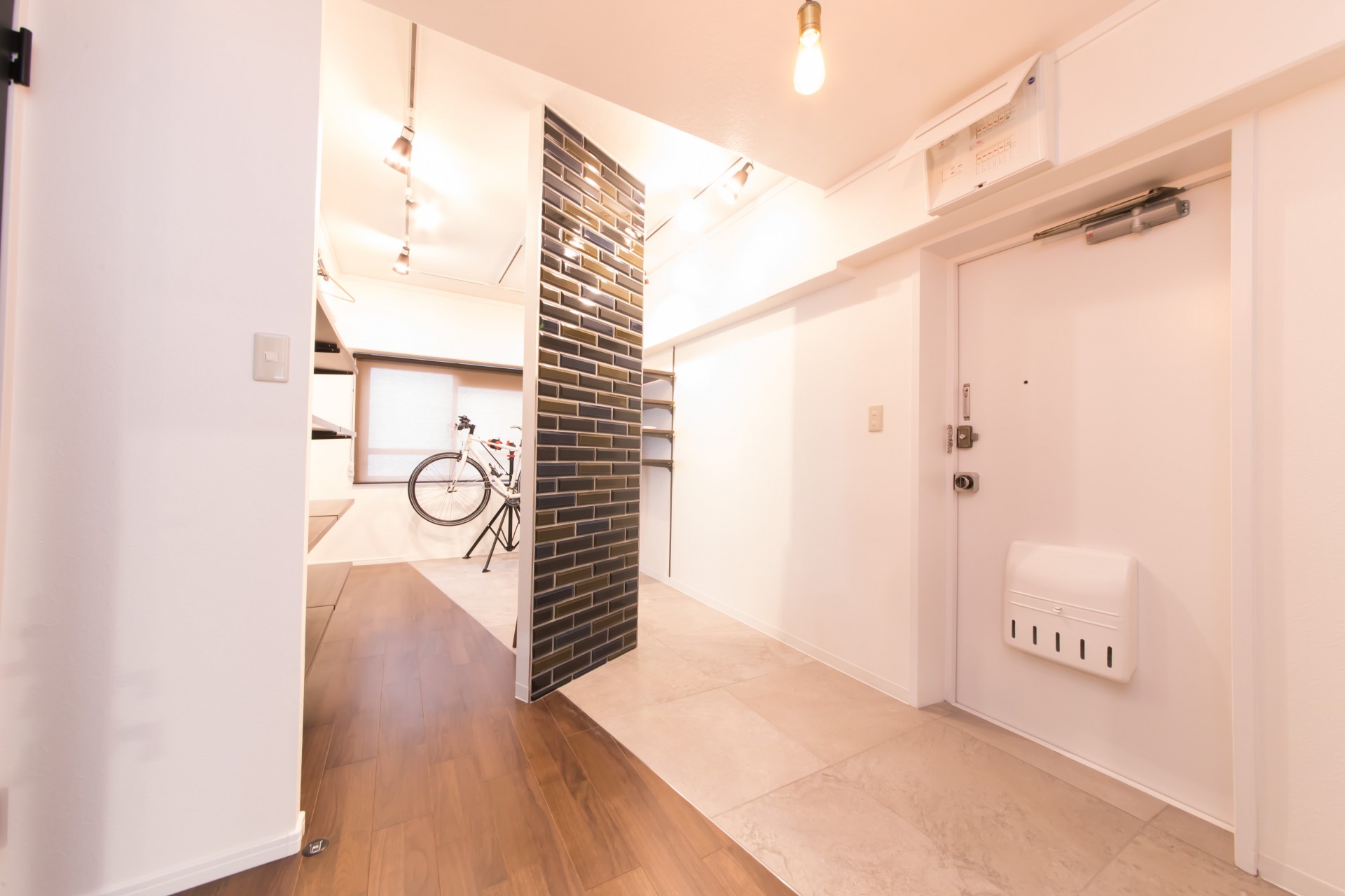 一番のポイントはレトロなタイル壁がアクセントになった大きな土間。